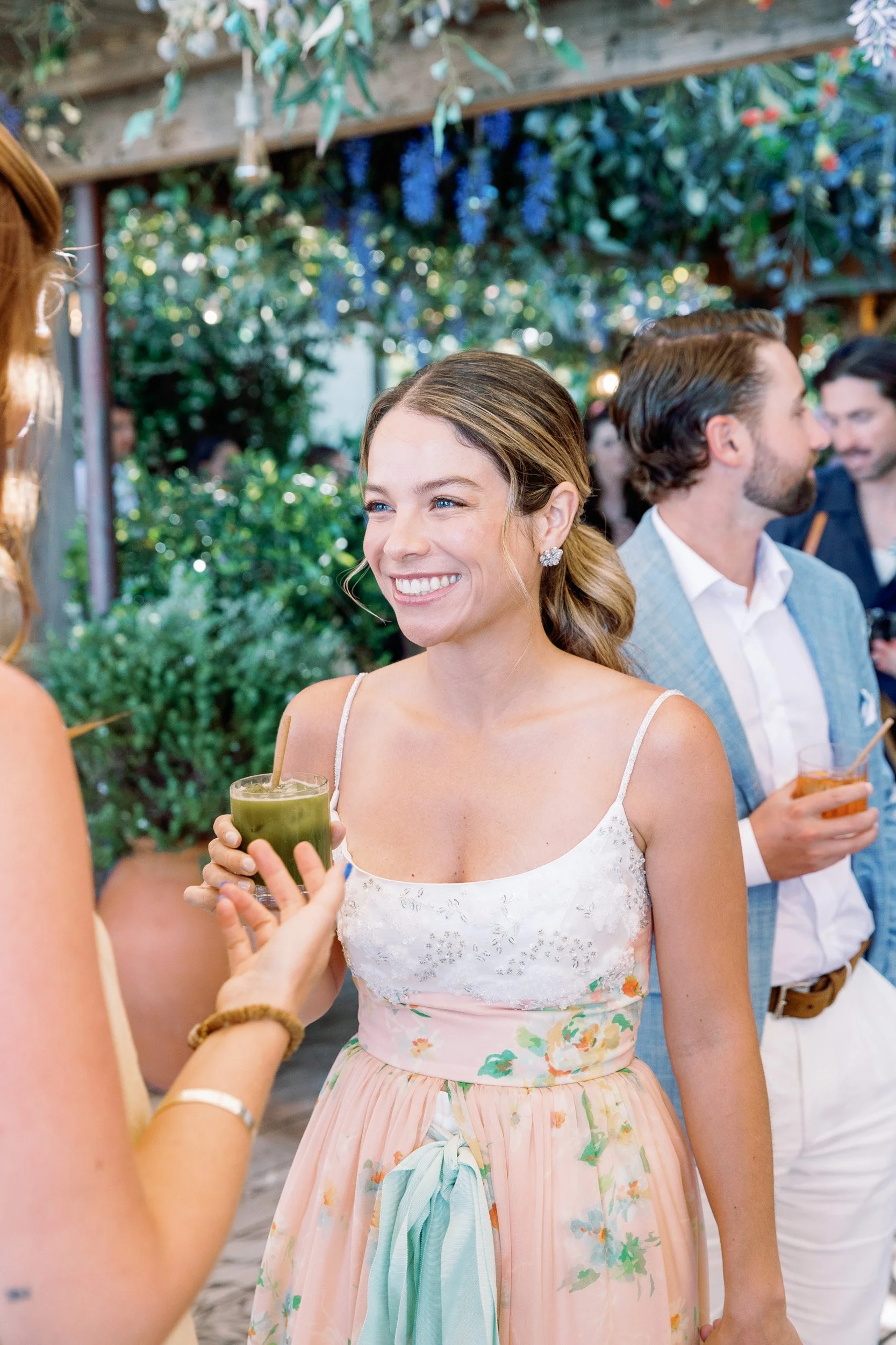 Honoring Annie’s plant-based ethos, the Tropezina chef designed a French-inspired menu of exquisite vegetarian small plates. As the sun dipped below the horizon, a DJ spun the couple’s favorite tunes, and the evening turned delightfully spontaneous with guests dancing barefoot in the sand, cocktails flowing from a custom beach bar. With the Mediterranean glistening just beyond, it was the perfect start to a weekend of celebration.